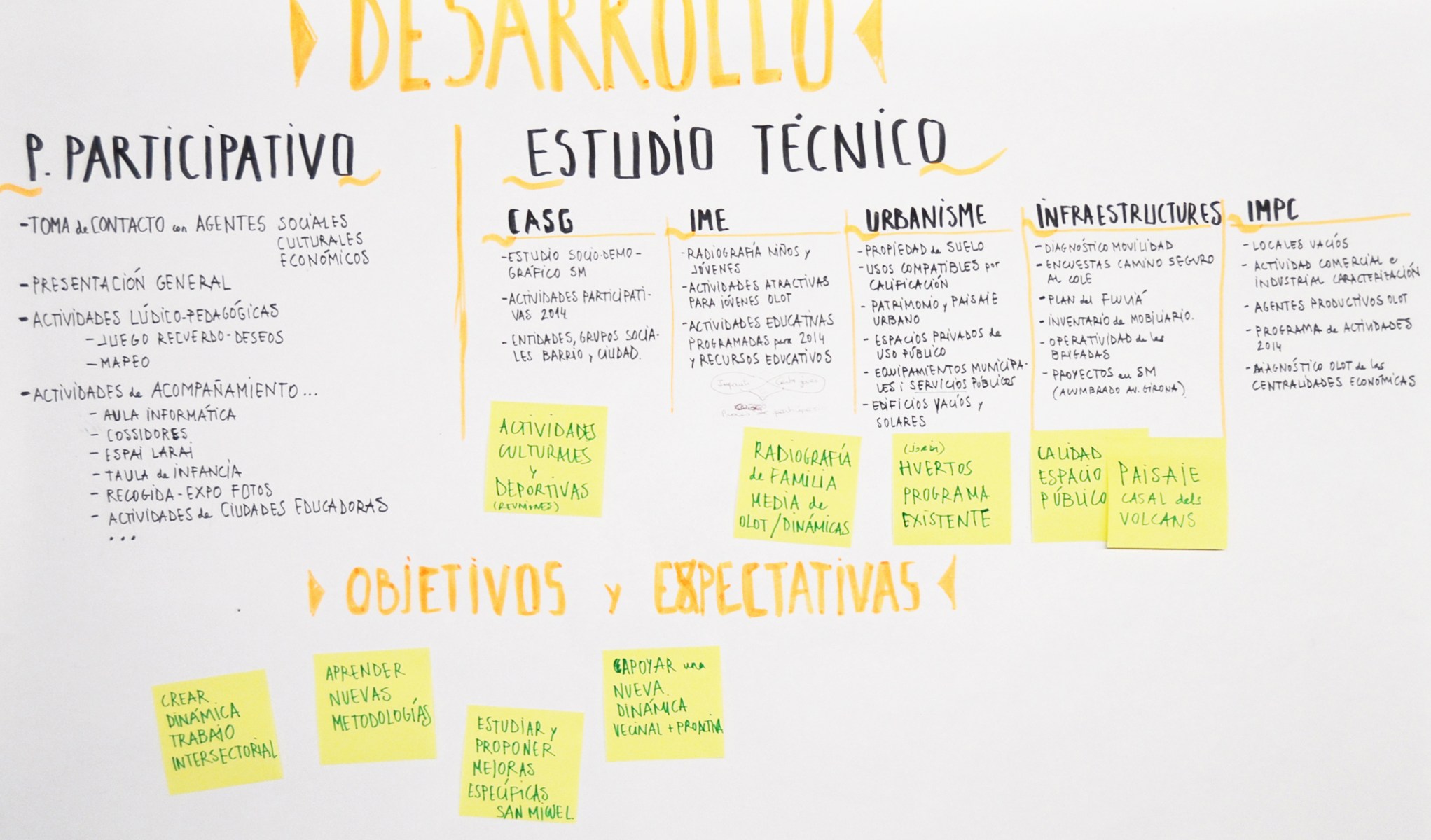 Més enllà de l’objectiu general del projecte, que era generar un programa d’accions de millora per al cas concret de Sant Miquel, el projecte s’enfronta a altres reptes igualment importants. D’una banda, generar una dinàmica de treball que sigui intersectorial internament i participativa cap enfora. Aprendre noves maneres de treballar, noves metodologies i dinàmiques que tinguin continuïtat en el futur i que permetin a l’Ajuntament i als seus tècnics abordar altres projectes seguint un esquema de treball similar. I al mateix temps, iniciar un canvi cap a una relació més propera amb els agents socials i econòmics basada en la col•laboració i les decisions compartides.
